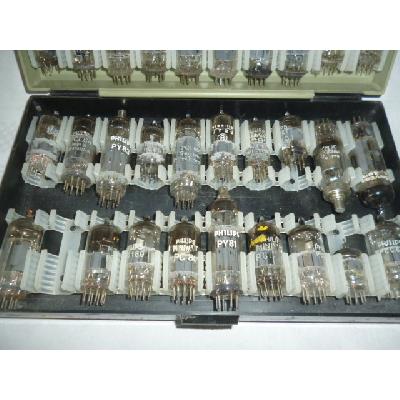 Scatola con valvole di varie marche, Philips - Samsung - GBC