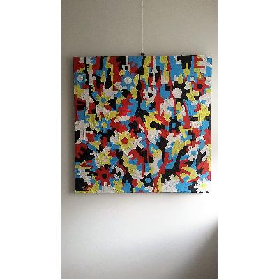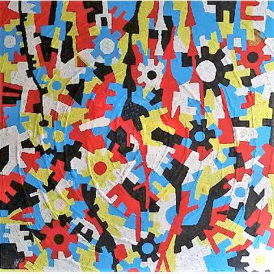 100 cm x 100 cm, alt. 3 cm. Dipinto materico su tela, sabbie colle viniliche acrilici.